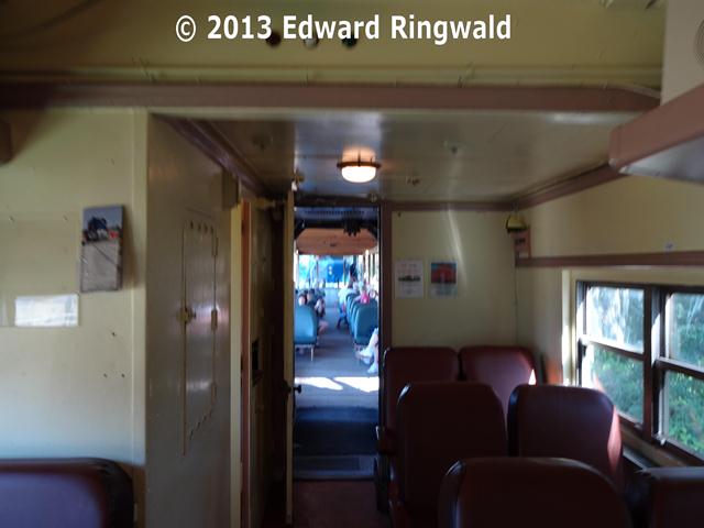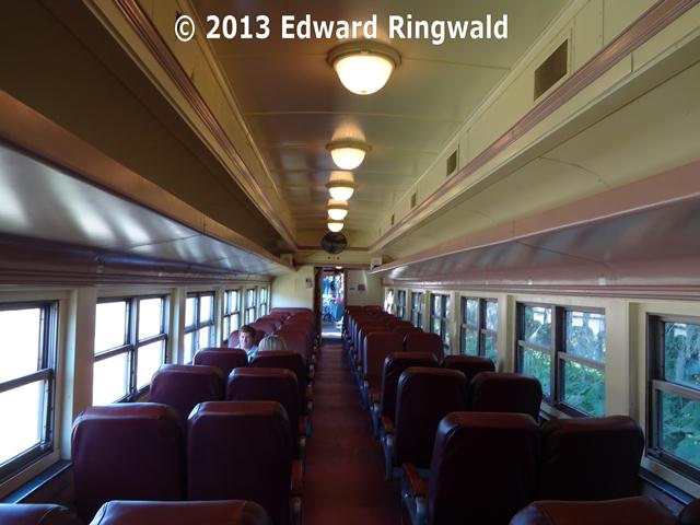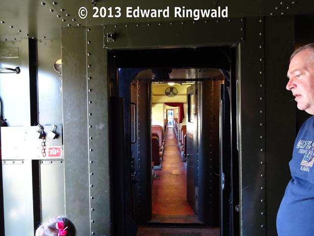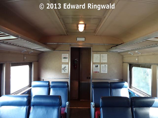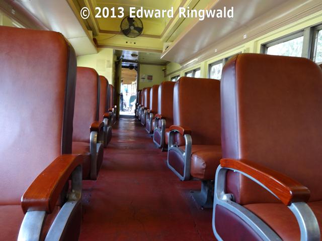 When it comes time to board, you walk up a ramp right onto the train - no steep steps to climb. Once the conductor takes your ticket you have a choice of cars to choose from. Cars may vary from one weekend to the next; this is a representative list of passenger railroad cars featured at the museum: