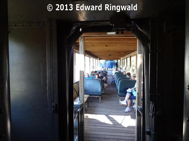 The open air observation car: This car used to be a gondola in freight service. When the museum took delivery of this car, it was repurposed into passenger seating with a canopy on top to protect the passengers from the elements. On a great day you can see everything up close and personal.