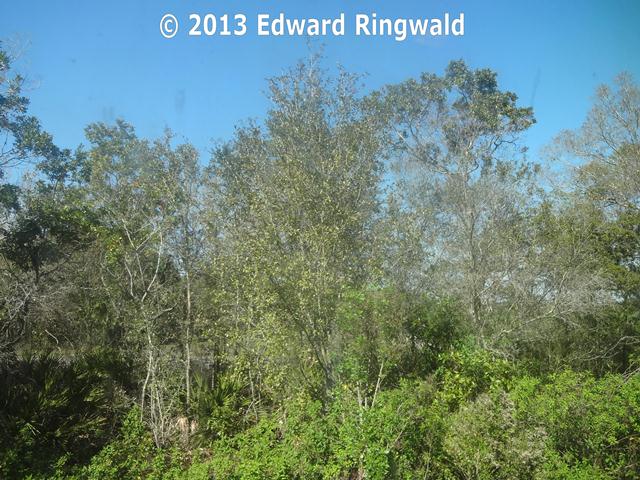 North of Dickey Road the terrain is more fields and forests that reflect Florida's past. Within a short time you will see the Florida Power and Light Manatee Plant to the right with the two smokestacks painted in alternating red and white to warn low flying aircraft. Right after that you will see a track spur that services the plant and - all of a sudden - the train comes to a stop thinking that you are in Willow. Not yet!