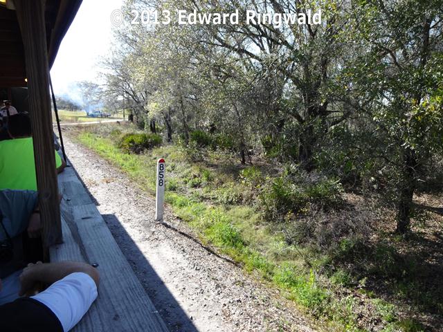 Dickey Road - Mile Post SW 858.0 - is the halfway point of the six mile trip. Just before Dickey Road on your left is an area that resembles the Old West, which is used during the train robbery themed trips. If you haven't been on a themed event train ride at the Florida Railroad Museum you owe it to yourself to go on one - it's lots of fun for your money!