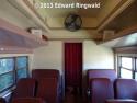 Once you enter the car you go through a central hallway and on either side you will see little rooms which are akin to today's roomettes on Amtrak. Look in one of the rooms and you will see its daytime configuration in which there is seating for one to two persons. In addition, there is a control panel which works the lights and a call button to summon the porter if need may be. A sink folds out and there is a self contained toilet for personal comfort.